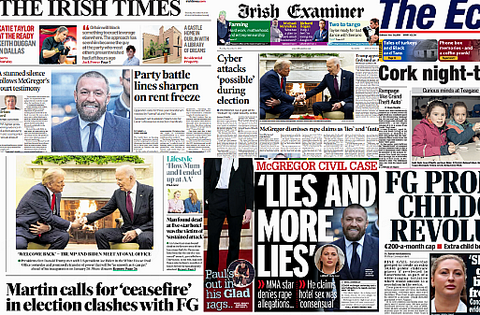 Both the Irish Daily Mirror and the Irish Daily Star lead with quotes from Conor McGregor giving evidence as he is accused of rape.