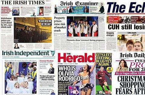 The ESRI research on house prices also features on the Irish Examiner's front page, as well as staff at Cork University Maternity Hospital (CUMH) saying they are seeing pregnant victims of domestic abuse every week.
