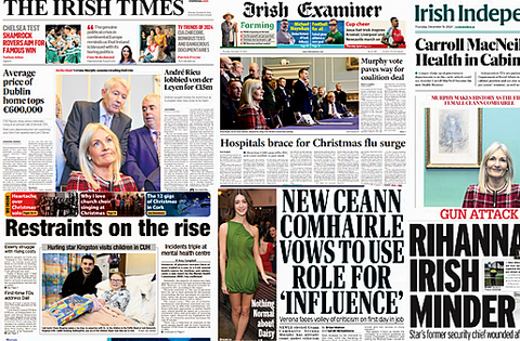 The Irish Examiner leads with Verona Murphy voted in as Ceann Comhairle, paving the way for a deal between Fine Gael, Fianna Fáil and independent TDs.