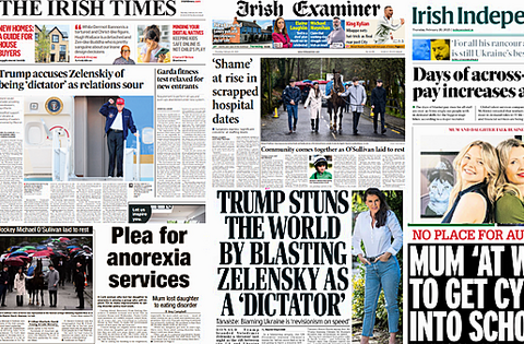 The Irish Times leads with Donald Trump calling Ukraine President Volodymyr Zelensky a dictator.