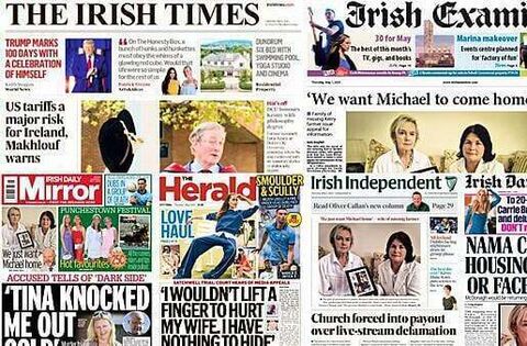 The Irish Times lead with Central Bank governor Gabriel Makhlouf warning that US tariffs are a major risk for Ireland, the family of missing Kerry farmer Michael Gaine who gardaí believe was a victim of homicide, saying they are "absolutely heartbroken" , and RTÉ writing down €3.6 million on a partly abandoned IT project.