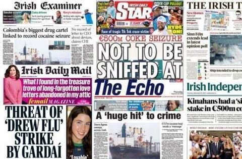 A €157 million haul of cocaine seized from a cargo ship dominates all the front pages on Thursday.