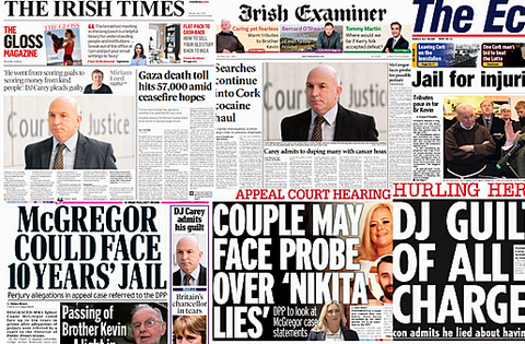 DJ Carey pleading guilty and the death toll continuing to rise in Gaza make the front pages of Thursday's papers.