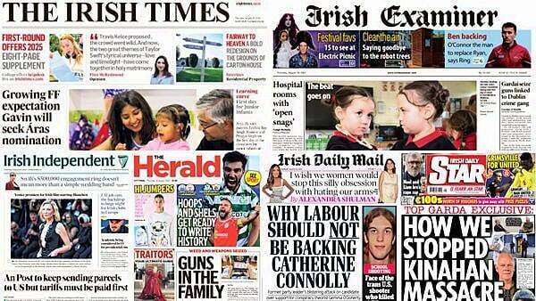 The Irish Daily Mail lead with former Labour leader Alan Kelly saying the party should not be backing Catherine Connolly in the presidential election because she previously backed the Áras campaign of right-wing radical Gemma O'Doherty.