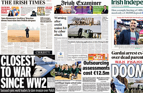 The Irish Times leads with Nato denouncing Russian drone incursion into Polish airspace.