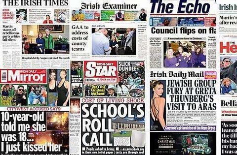 And finally, the Belfast Telegraph leads with a sexual harassment case against a teenager who was "slapped on the bottom" by her manager at JD sports. The case has now been settled for €65,000.