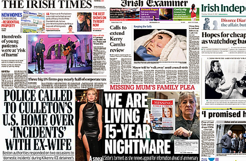 The Irish Daily Mirror leads with the family of Esra Uyrun, as they say they have been "trapped in a nightmare" since she disappeared almost 15 years ago.