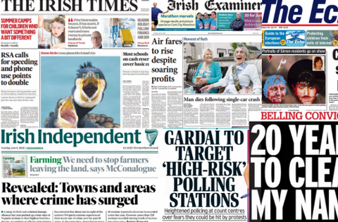 The Irish Independent leads with the Irish towns and areas that has seen a surge in crime rates.