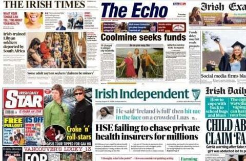 There are a litany of stories featuring in Irish newspapers today, featuring Oasis rumours and Sven-Goran Eriksson tributes, alongside crime stories, foreign stories and court stories.