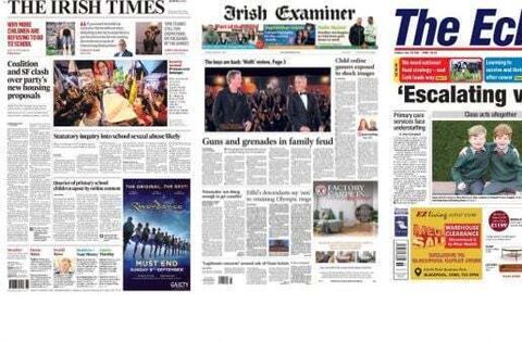 Tuesday's front pages focus on a range of stories from the government clashing with Sinn Féin about their housing plans to armed checkpoints being set up in Cork after recent violence incidents.