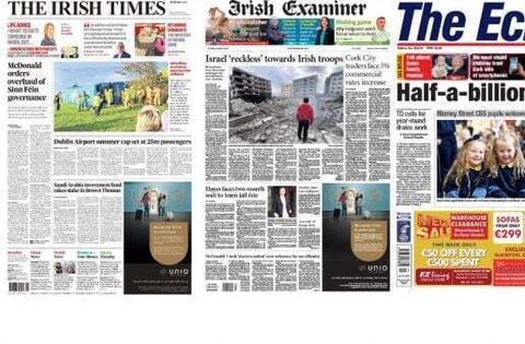 The Echo meanwhile focusses on €484 million in compensation being paid out over a decade by the South/South West Hospital Group.