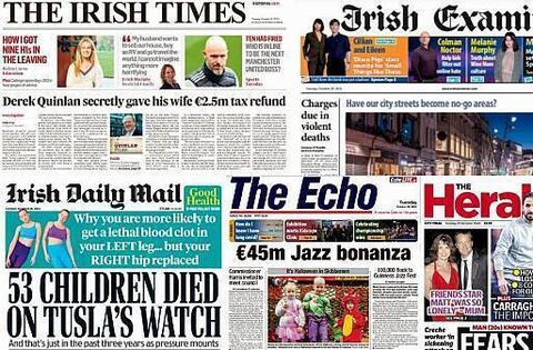 The Irish Daily Mail lead with a story saying that 53 children have died on child and family agency Tusla's watch in the last three years.