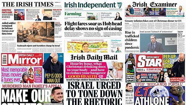 Lastly, the Daily Star says a businessman is charging his friend and family £75 (€90) for Christmas dinner, claiming Scrooge is “alive and well in Fulham”.
