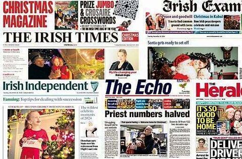 The death of a delivery driver whose car went into the Grand Canal in Co Kildare and a variety of other stories feature on Ireland's front pages on Christmas Eve.