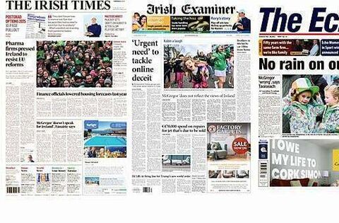 The Echo meanwhile focus on the 3,ooo participants of the Cork St Patrick's Day parade on Momday.