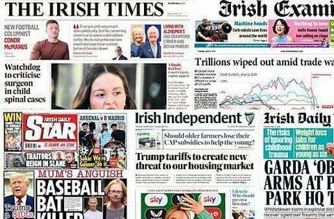 The Irish Examiner lead with a story about the global stock markets plummeting amid Donald Trump's tariffs announcement, alongside a story about the rise in Irish house prices potentially slowing due to tariffs.