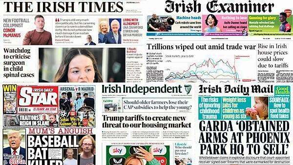 The local and global impacts of Donald Trump's tariffs are heavily featured on Irish front pages on Tuesday morning.
