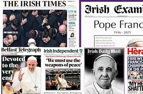 The Irish Examiner, Belfast Telegraph, Irish Daily Mirror, Irish Daily Star, Irish Daily Mail, and Irish Independent all dedicate their entire front pages to Pope Francis's death.