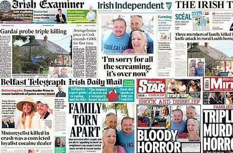 The Herald, Irish Independent, Irish Daily Mail, Irish Daily Mirror and Irish Daily Star all lead with the killing of a mother, father and son in Co Louth who were found in their home on Monday morning.