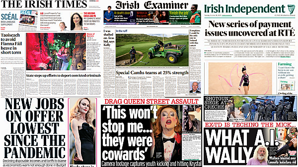 The fallout from the Presidential election, and new payment scandals at RTÉ, make the front pages of Tuesday's papers.