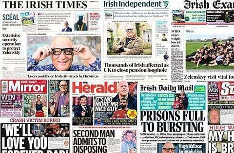 The Irish Times lead with an extensive security operation being in place for Ukrainian president Volodymyr Zelenskiy’s visit to Ireland, the potential use of tasers by gardaí on Irish city streets, and Councillors not having the power to dename Herzog Park.