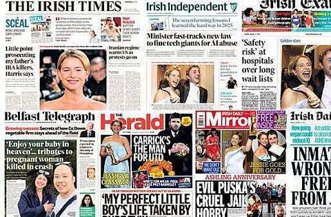 A variety of stories feature on Irish front pages on Tuesday morning, from politics to crime and court stories.
