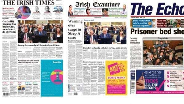 Tuesday's front pages focus on a range of stories from Garda HQ being prepared to order GRA members to do overtime to warnings over a huge rise in Step A cases in children.