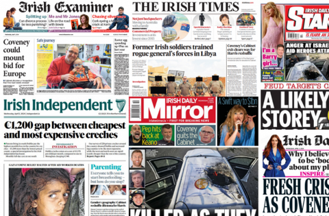 Simon Coveney's decision to leave Cabinet, childcare costs, and the fallout of an Israeli airstrike in Gaza which killed aid workers are covered on the front pages of Wednesday's national newspapers.