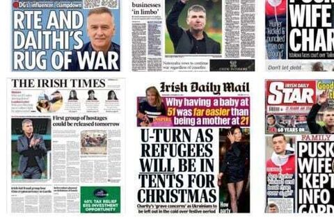The ceasefire and hostage release deal between Israel and Hamas, Cork businesses impacted by recent floods being left 'in limbo', and what will likely be Stephen Kenny's last game as Republic of Ireland manager, all feature on Wednesday's front pages.