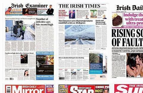Along with the weather, a story on the record number of 'dangerous fails' in the NCT makes the front page of the Irish Examiner.
