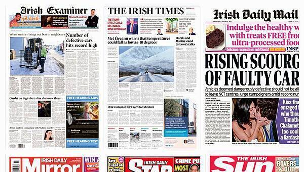 The Irish Times leads with a story on the cold snap, along with Taoiseach Simon Harris and Tánaiste Micheál Martin saying they are happy to work with Independent TD Michael Lowry in government formation.