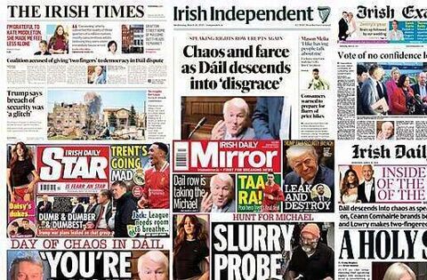 A "day of chaos in the Dáil" features heavily on the front pages of Wednesday’s newspapers.