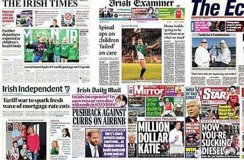 The Irish Independent leads with the ECB being tipped to slash interest rates deeper and faster than previously expected to fight off the risk of an economic slowdown in the wake of Donald Trump's tariff hikes.