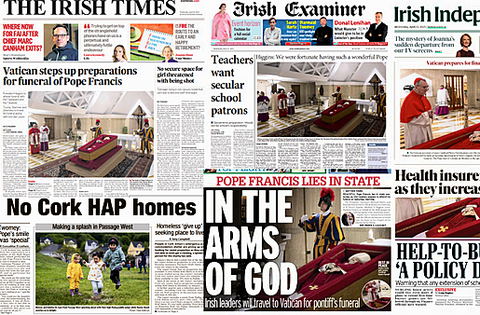 The Irish Times leads with preparations for the funeral of Pope Francis.