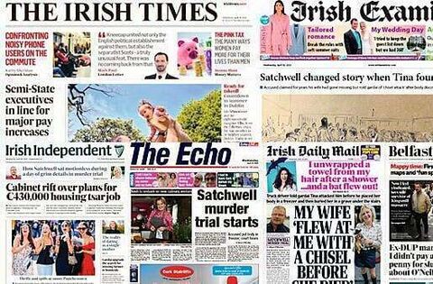 The Irish Examiner, Irish Daily Mirror, Irish Daily Star, The Echo, Irish Daily Mail and The Herald all lead with stories about the trial of Robert Satchwell, who is accused of allegedly murdering his wife Tina in Cork.