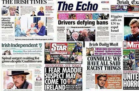 The Irish Examiner also leads with the genocide in Gaza, stating that President Michael D Higgins is set to call on the UN to expel Israel.