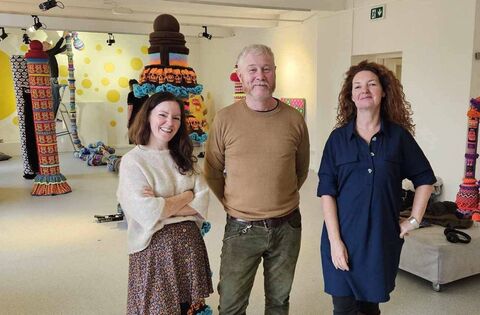Artist Paul Murnaghan pictured with Linenhall directors Bernadette Greenan and Fiona Neary.