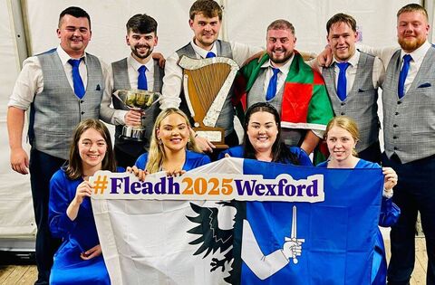 The members of Glor na dTonn Céilí Band celebrate their victory at the All-Ireland Fleadh Cheoil in Wexford in August.