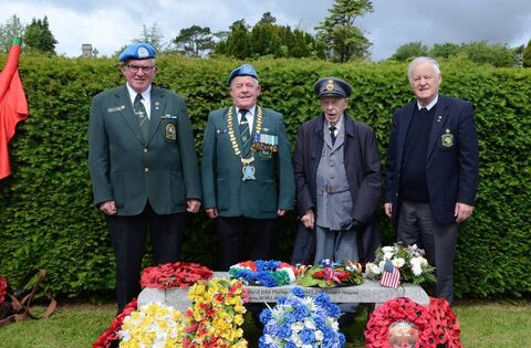 Michael Feeney (extreme right) is pictured in Mayo Peace Park in 2019 with, from left: United Nations veteran Michael Rattigan, Galway; Jim Casey, National Executive Chairman of the Irish United Nations Veterans' Association and John Farmer, Ballinrobe (World War II veteran).