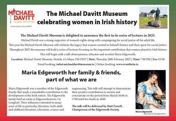 Check out the upcoming lectures at the Michael Davitt Museum.