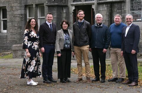 Pictured at the launch of the fundraising initiative were, from left: Geraldine McKenzie, Secretary, Moy Singers; Cllr Mark Duffy, Chairperson, Ballina Convent Regeneration Project; Mona Jackson, Chairperson, Moy Singers; David Murphy, University of Notre Dame Church Property initiative; Fr Aidan O’Boyle, Committee Member, Ballina Convent Regeneration Project; Vincent Lang, Secretary, Ballina Convent Regeneration Project; Minister Dara Calleary.