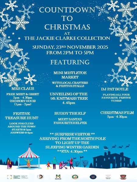 Ballina is set to sparkle as The Jackie Clarke Collection ushers in the festive season with its much-loved Countdown to Christmas celebration on Sunday, 23rd November 2025, from 2pm to 5pm. This annual event has become a cherished tradition for families and visitors, offering an afternoon filled with wonder, creativity, and community spirit.