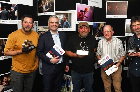 Pictured at the launch of the Press Photographers Ireland CLG annual exhibition were, from left: Michael McLoughlin, Minister Dara Calleary TD, James Crombie, David Farrell and Conor McKeown. Picture: John O'Grady