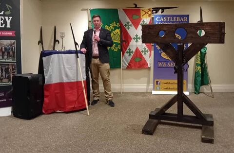There will be a cultural evening in the TF that will tell the story of the journey of French soldiers from La Rochelle to Castlebar through songs, folklore, poetry, and art.