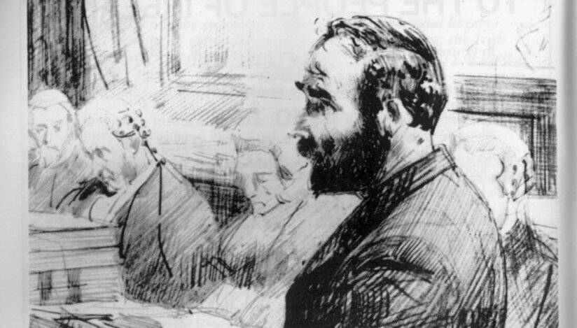 Michael Davitt in the new committee room of the Land League in 1881.
