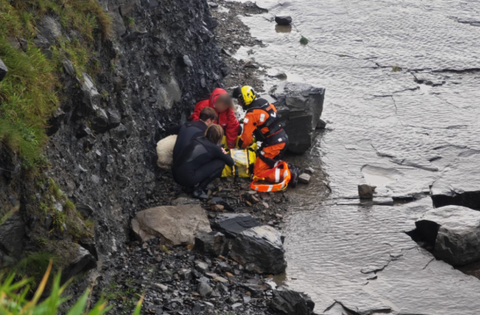 A helicopter crew member was winched down to the location as waves began to crash onto the rocks near the woman and her dog. The winchman/paramedic placed the dog in a specialist animal rescue bag before the woman and her pet were both airlifted to the cliff above. They were met on the cliff top by Doolin Coast Guard volunteers.