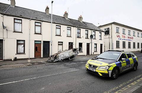 It came after similar violent disorder around Clonavon Terrace in Ballymena on Monday night, following an earlier peaceful protest which was organised in support of the family of a girl who was the victim of an alleged sexual assault in the area. Two teenage boys, who spoke to a court through a Romanian interpreter, have been charged.