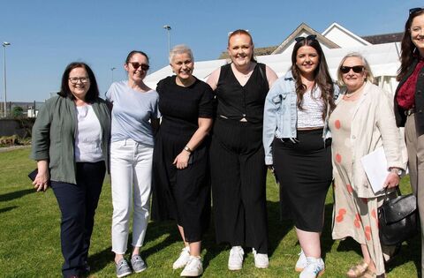 Niamh Charlton, Pam Ní Thaighe, Maria Walsh MEP, Shauna Tarpey, Vanessa McNicholas, Anne Marie Carroll and TD Keira Keogh at the official opening of the new wellness garden at Youthreach Kiltimagh. Picture: Alison Laredo