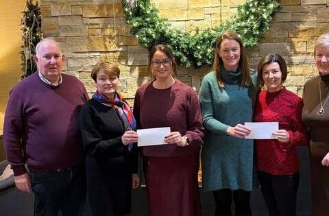 The 2025 Diamond Ladies Lunch rasied €19,846 and this was divided evenly between Pallative Care at North West Hospice, Sligo and SHOUT (Sligo Hospital Oncology Unit Trust). Rachel Wilson, Moya Wilson and Louise Kilcullen present the cheques to Simeon Whittington and Martha Cosgrove on behalf of SHOUT and Jess Kelly on behalf of North West Hospice.
