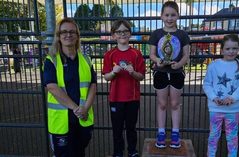 Tracy Cunnane with the winners of the Stephen Grogan Memorial Race.